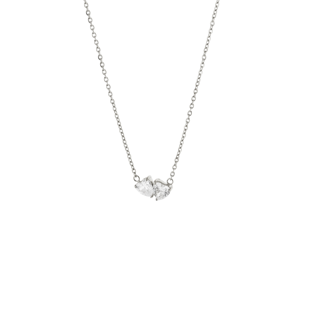 Κολιέ Happy Hearts ατσάλινο με δύο λευκές καρδιές ζιργκόν