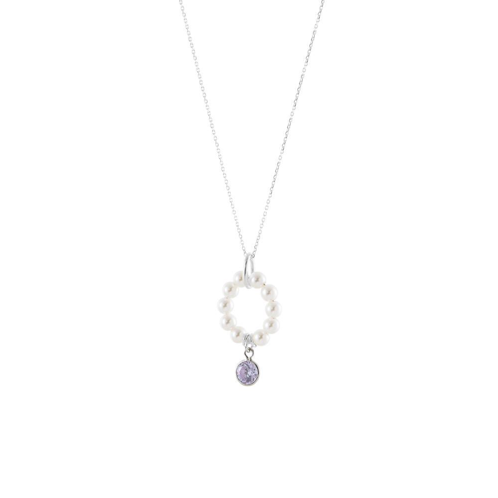 Κολιέ La Dolce Vita ασημένιο με λευκές πέρλες και λιλά ζιργκόν