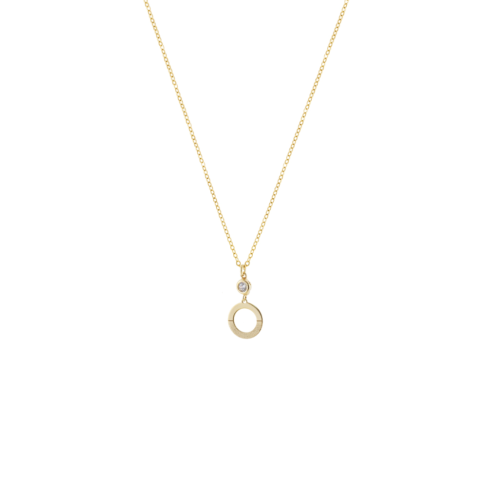 Κολιέ Lovely ασημένιο επίχρυσο με στρογγυλό στοιχείο και ζιργκόν