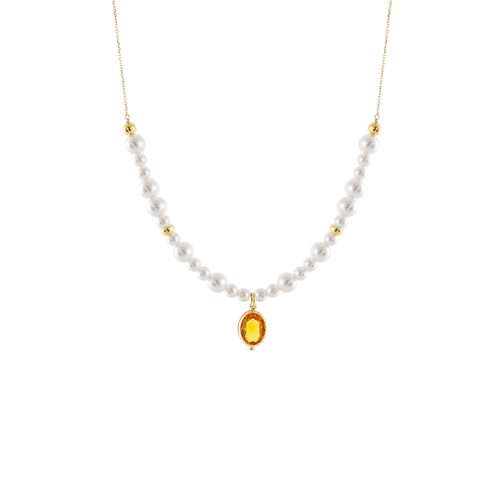 Κολιέ La Dolce Vita ασημένιο επίχρυσο με λευκές πέρλες και champagne ζιργκόν