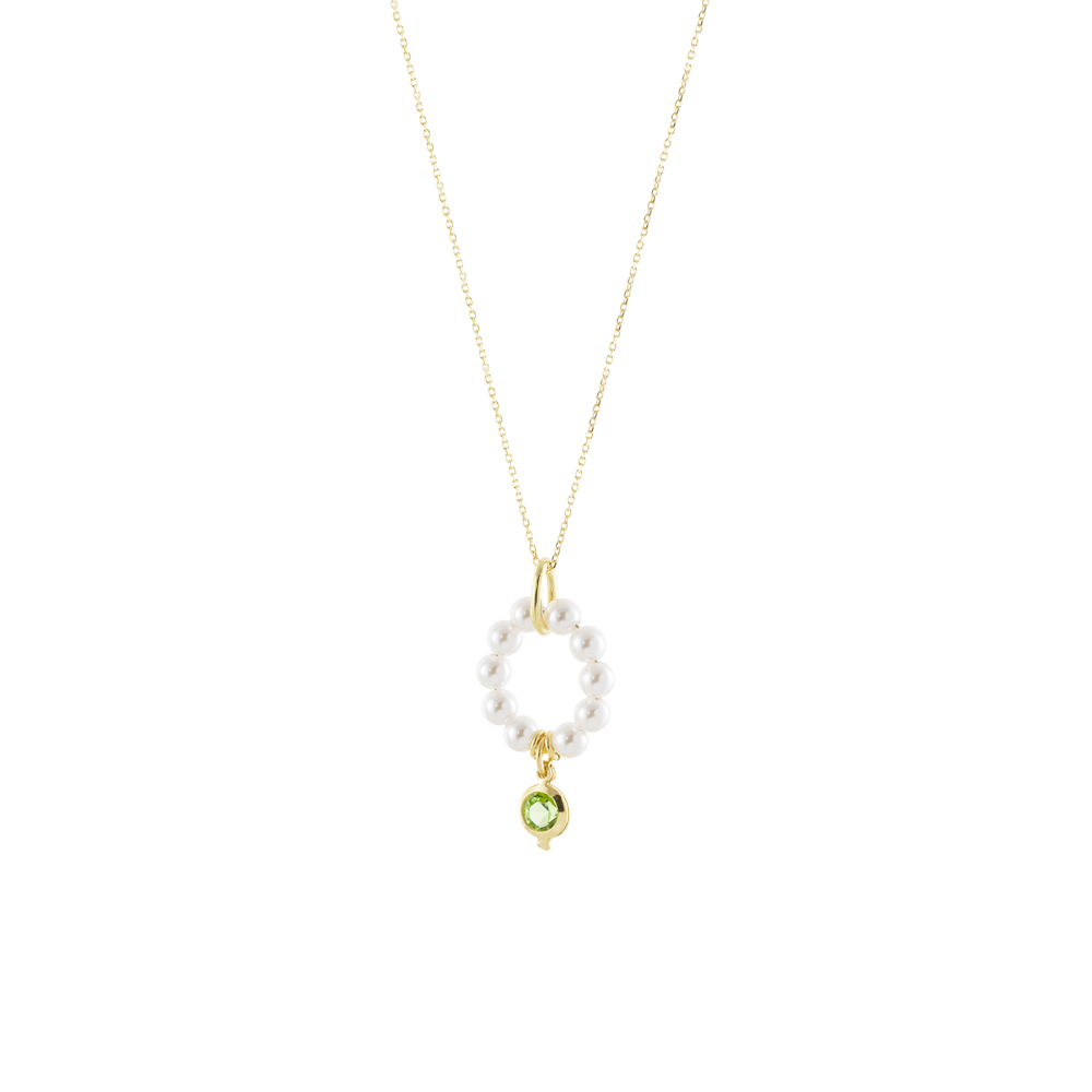 Κολιέ La Dolce Vita ασημένιο επίχρυσο με λευκές πέρλες και πράσινο ζιργκόν