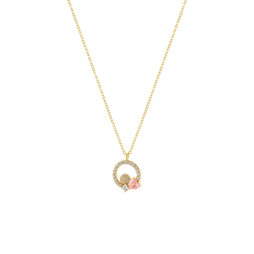 Κολιέ Happy Hearts μεταλλικό επίχρυσο με ροζ καρδιά, στοιχείο και ζιργκόν