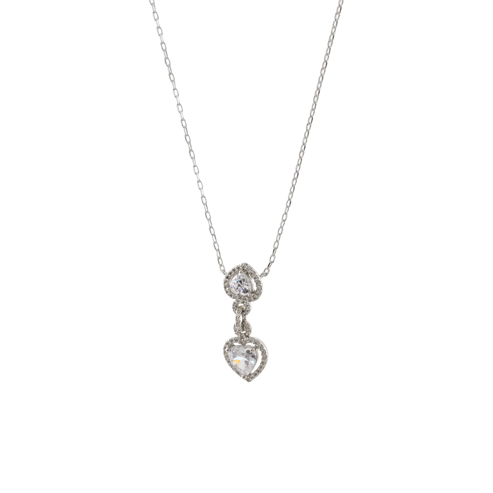 Κολιέ Tiny μεταλλικό ασημί με καρδιές και λευκά ζιργκόν