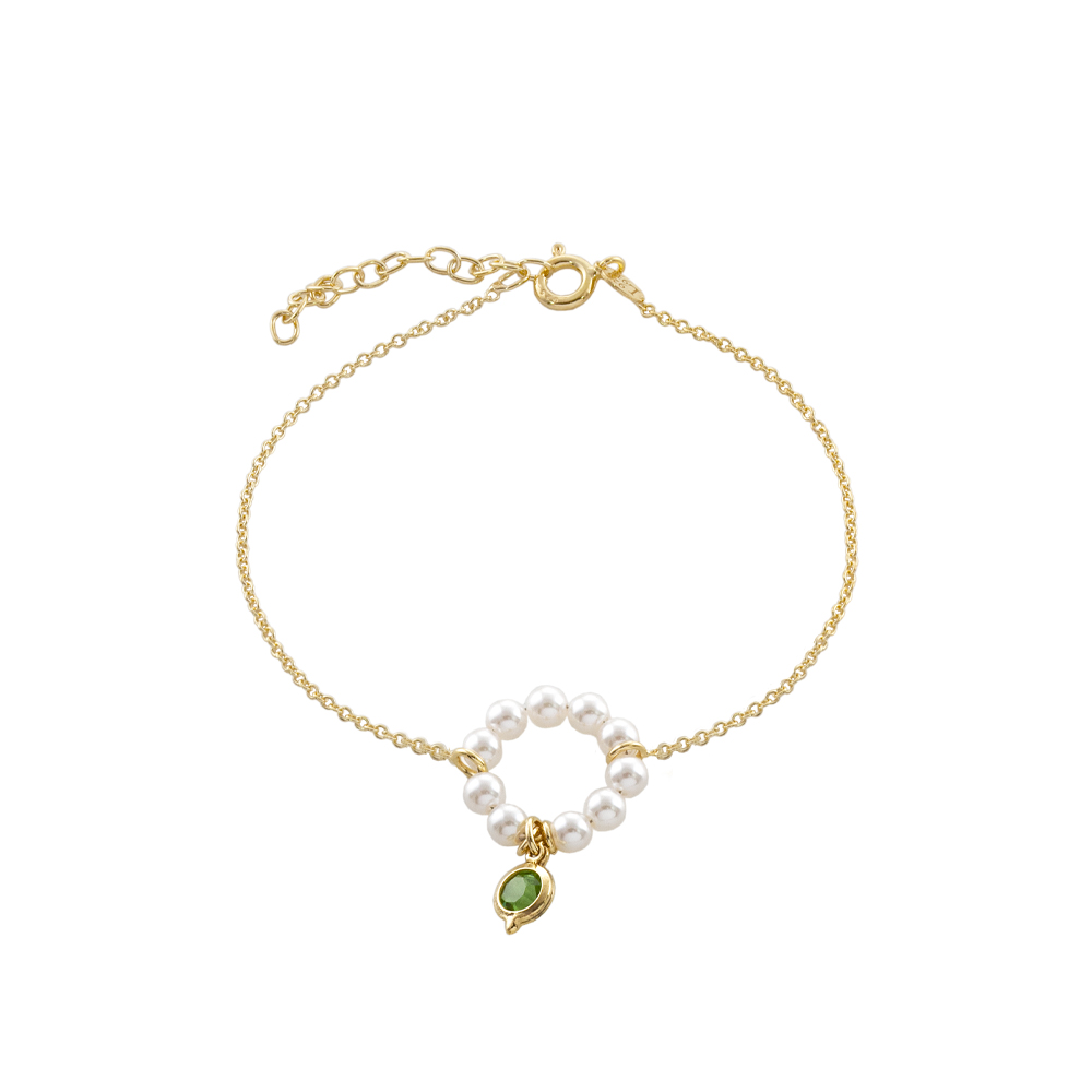 Βραχιόλι La Dolce Vita ασημένιο επίχρυσο με λευκές πέρλες και πράσινο ζιργκόν