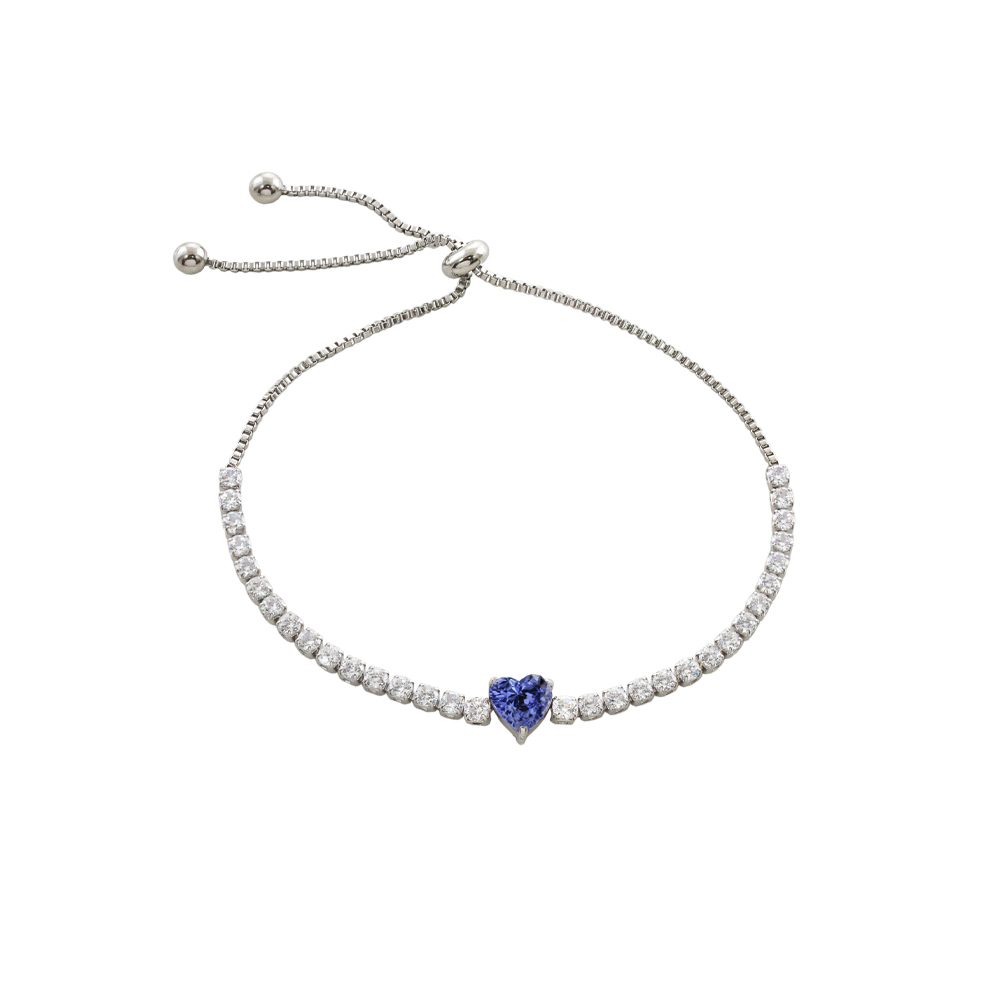 Βραχιόλι Happy Hearts μεταλλικό ασημί με μπλε καρδιά και λευκά ζιργκόν