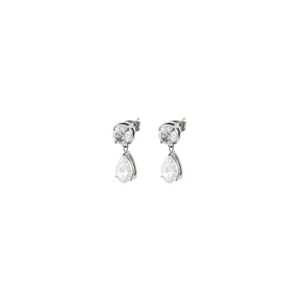 Σκουλαρίκια Happy Hearts ατσάλινα με στρογγυλό και δάκρυ ζιργκόν