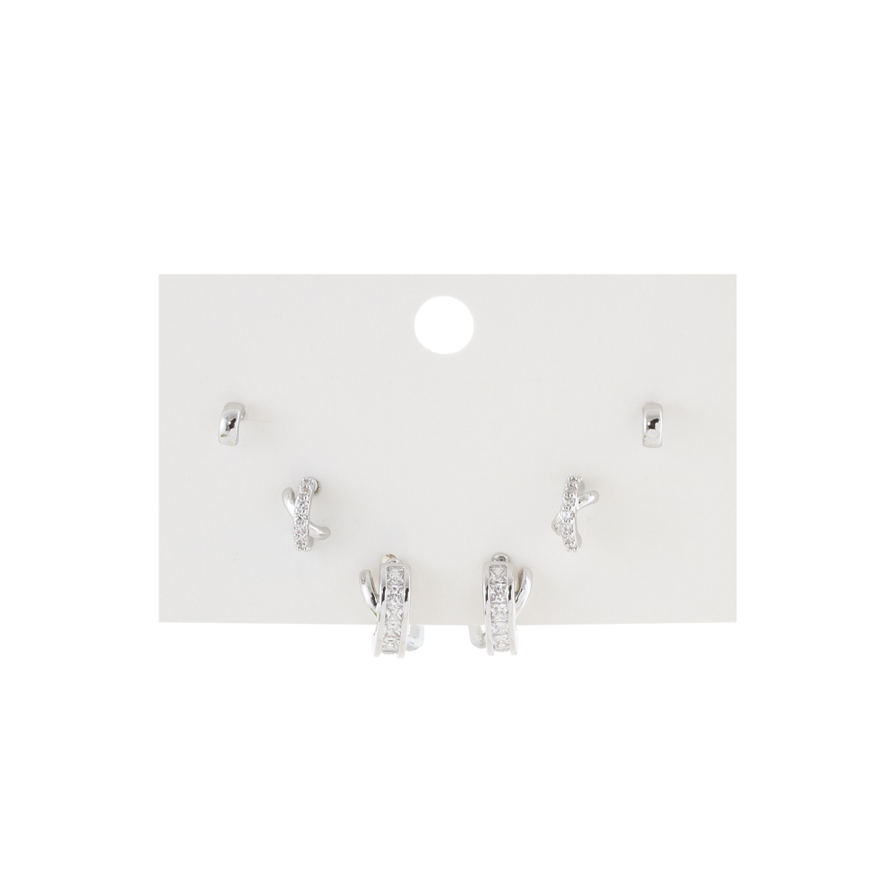 Υπέροχο σετ με 3 ζευγάρια σκουλαρίκια με χιαστί σχέδιο με λευκά cz ή σκέτα, από την συλλογή Tiny της Loisir.