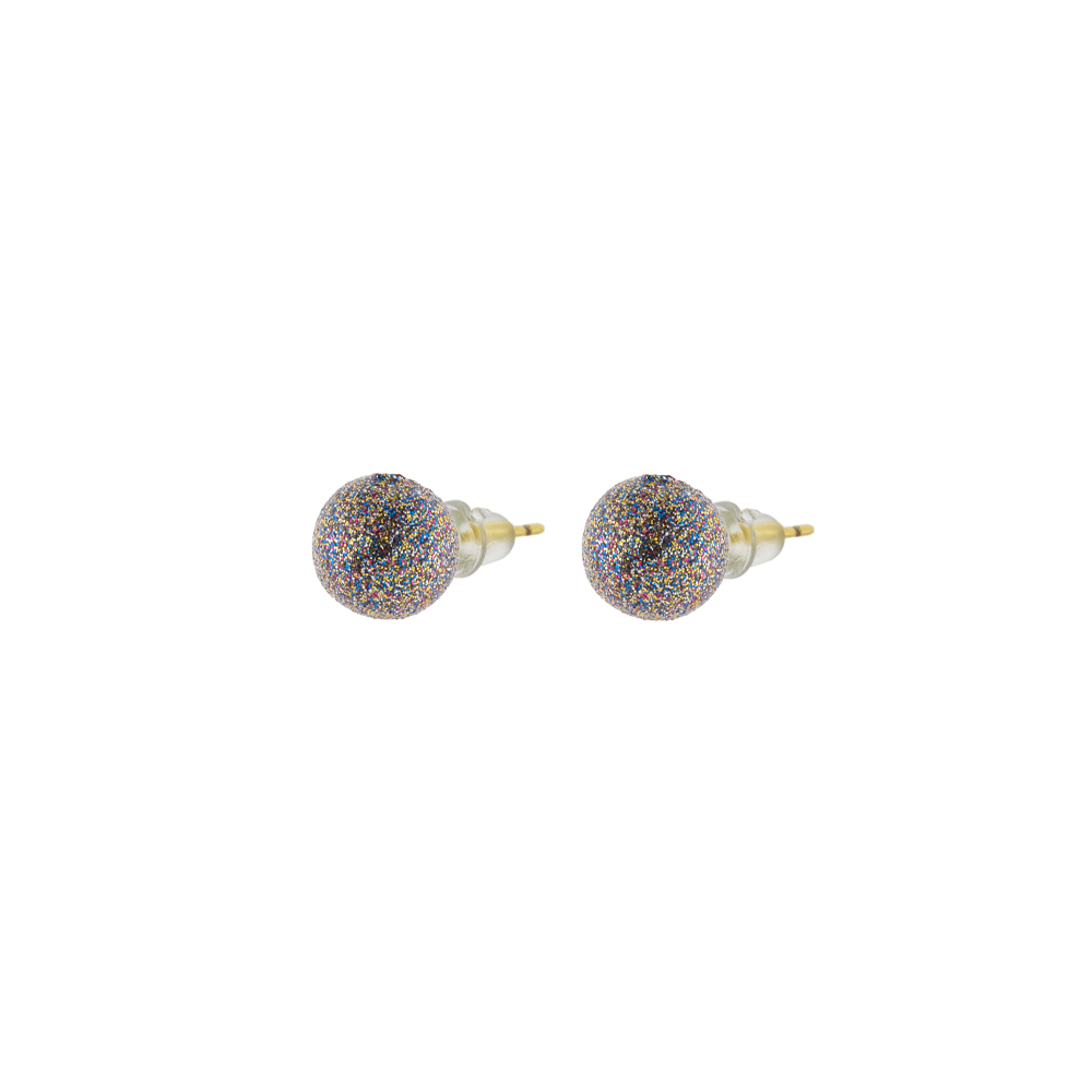 Σκουλαρίκια Fireball μεταλλικά επίχρυσα με γκρι glitter